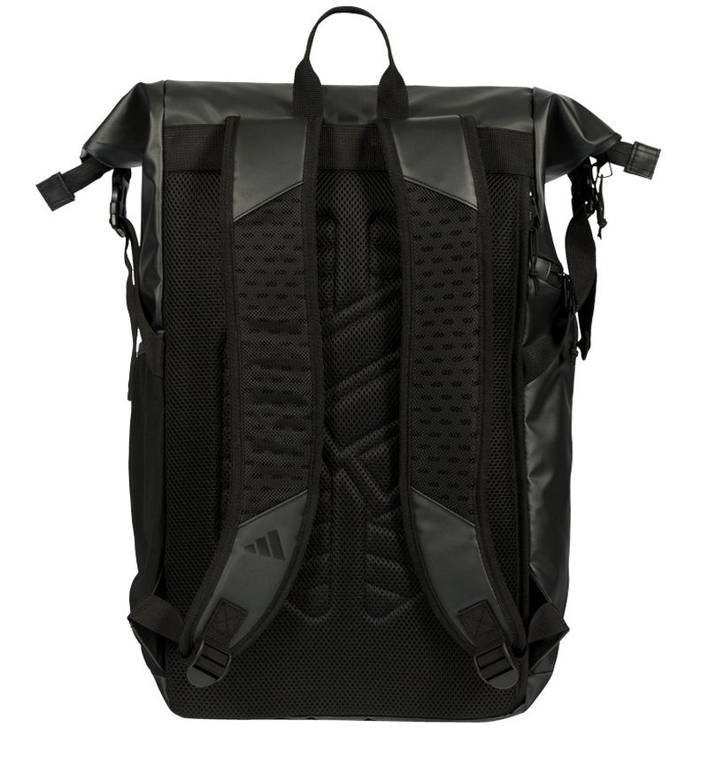 Praktyczny i pojemny plecak o nieszablonowej konstrukcji. Idealnie sprawdzi się zarówno na korcie, jak i w codziennym użytkowaniu. Posiada obszerną komorę główną z zamknięciem na suwak i możliwością rolowanego zwinięcia. Komora wyposażona została w wewnętrzne organizery. Z przodu znajduje się wyposażona w ochronę termoizolacyjną przegroda na rakiety. Dodatkowa komora do przechowywania laptopa umieszczona w strefie pod plecami. Po bokach dwie zewnętrzne kieszenie na akcesoria - jedna zamykana na suwak, druga, siateczkowa, przystosowana do przenoszenia np. bidonu lub puszki piłek. Dwie regulowane, wyściełane szelki oraz uchwyt do trzymania w dłoni pozwolą na wygodne przenoszenie plecaka.