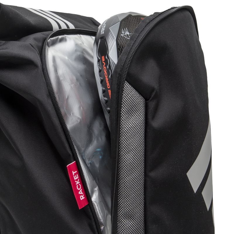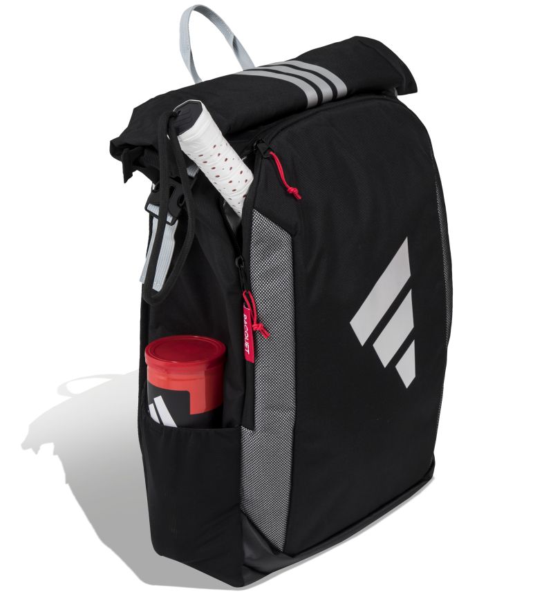 Praktyczny i pojemny plecak o nieszablonowej konstrukcji. Idealnie sprawdzi się zarówno na korcie, jak i w codziennym użytkowaniu. Posiada obszerną komorę główną z zamknięciem na suwak i możliwością rolowanego zwinięcia. Komora wyposażona została w wewnętrzne organizery. Z przodu znajduje się duża, zewnętrzna kieszeń zamykana na zamek błyskawiczny. Po bokach dwie otwarte siateczkowe kieszenie do przenoszenia m.in. bidonu. Dodatkowa komora do przechowywania laptopa umieszczona w strefie pod plecami. Dwie regulowane szelki oraz uchwyt do trzymania w dłoni pozwolą na wygodne przenoszenie.