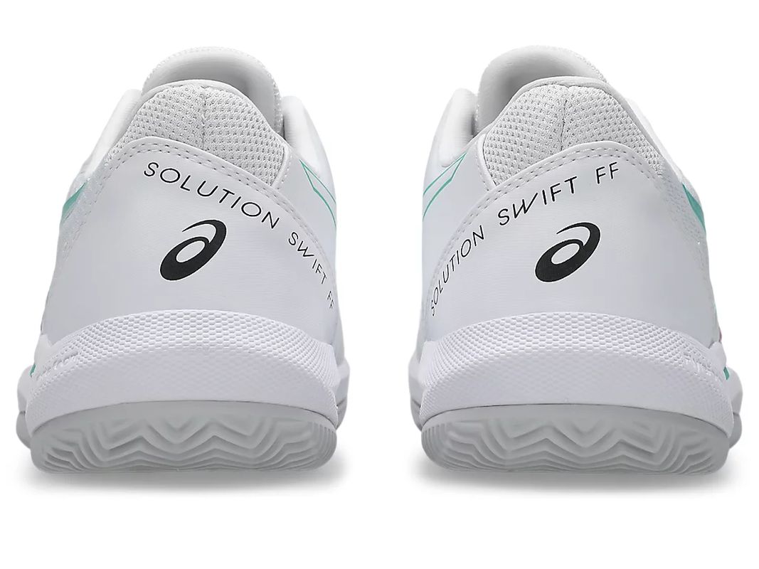 Wyróżniający się lekkością model Solution Swift FF pozwala uzyskać bardzo dobre przyspieszenie, szczególnie w pierwszych fazach startu. Przeprojektowana cholewka z większymi strefami z siateczki zapewnia bardzo dobrą oddychalność. Liczne wzmocnienia w newralgicznych strefach zwiększają wytrzymałość. Przednią część podeszwy wyposażono w system PGUARD dla lepszej trwałości i ochrony przed uszkodzeniami mechanicznymi. Podeszwa środkowa z energetycznej pianki FLYTEFOAM gwarantuje najwyższej klasy amortyzację i świetny zwrot energii wkładanej w odbicie. Zastosowano również wspierającą stabilność technologię TRUSSTIC. But posiada podeszwę przeznaczoną do gry na kortach ceglanych.