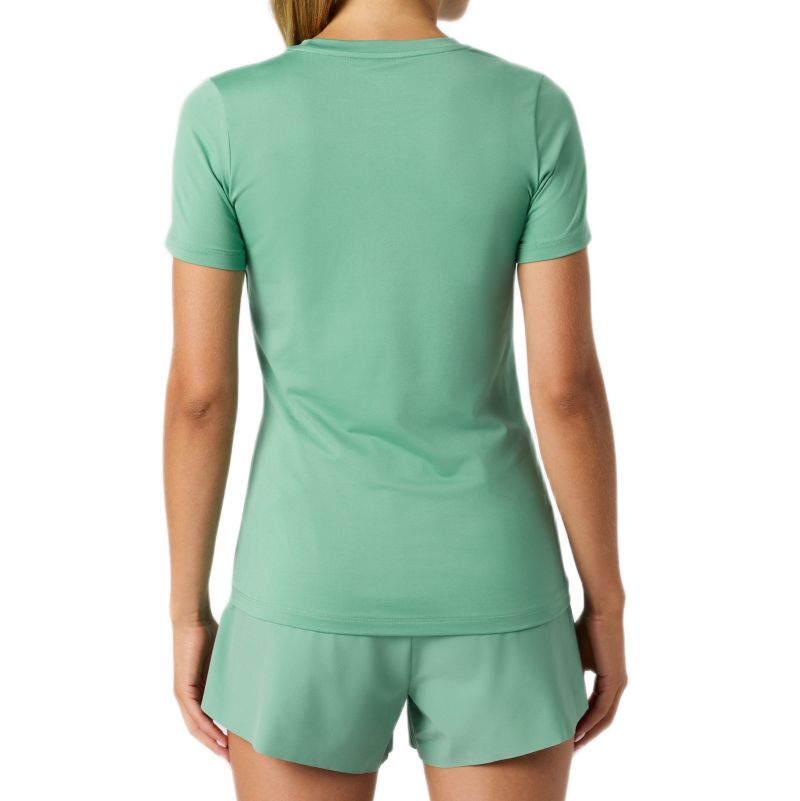 T-shirt o dopasowanym, podkreślającym sylwetkę kroju. Wykonany z lekkiego, przyjemnego w dotyku materiału. Rozciągliwa tkanina dostosowuje się do ruchów, gwarantując swobodę oraz komfort podczas aktywności. Wydłużony tył zapewnia dodatkową ochronę. T-shirt wykonany z oddychającego, sprawnie odprowadzającego wilgoć materiału. Idealny wybór do treningów, gier i codziennego użytku.