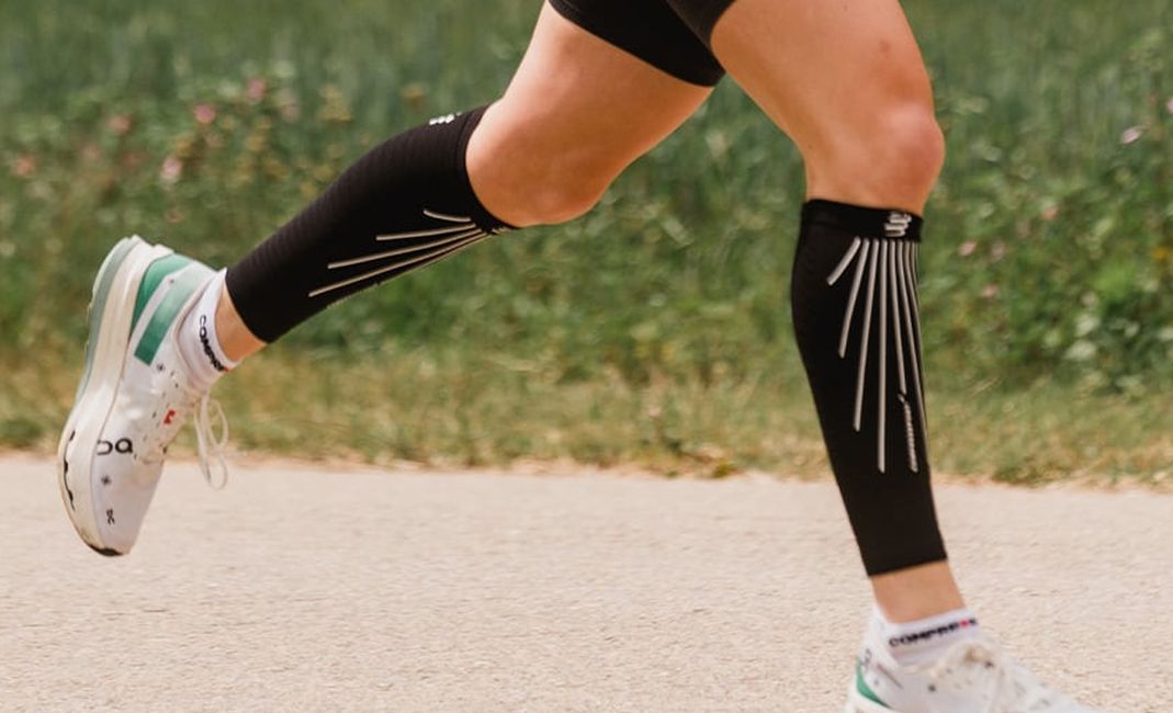 Opaski kompresyjne na łydki Compressport R2 Aero Calf Sleeves - black/white
