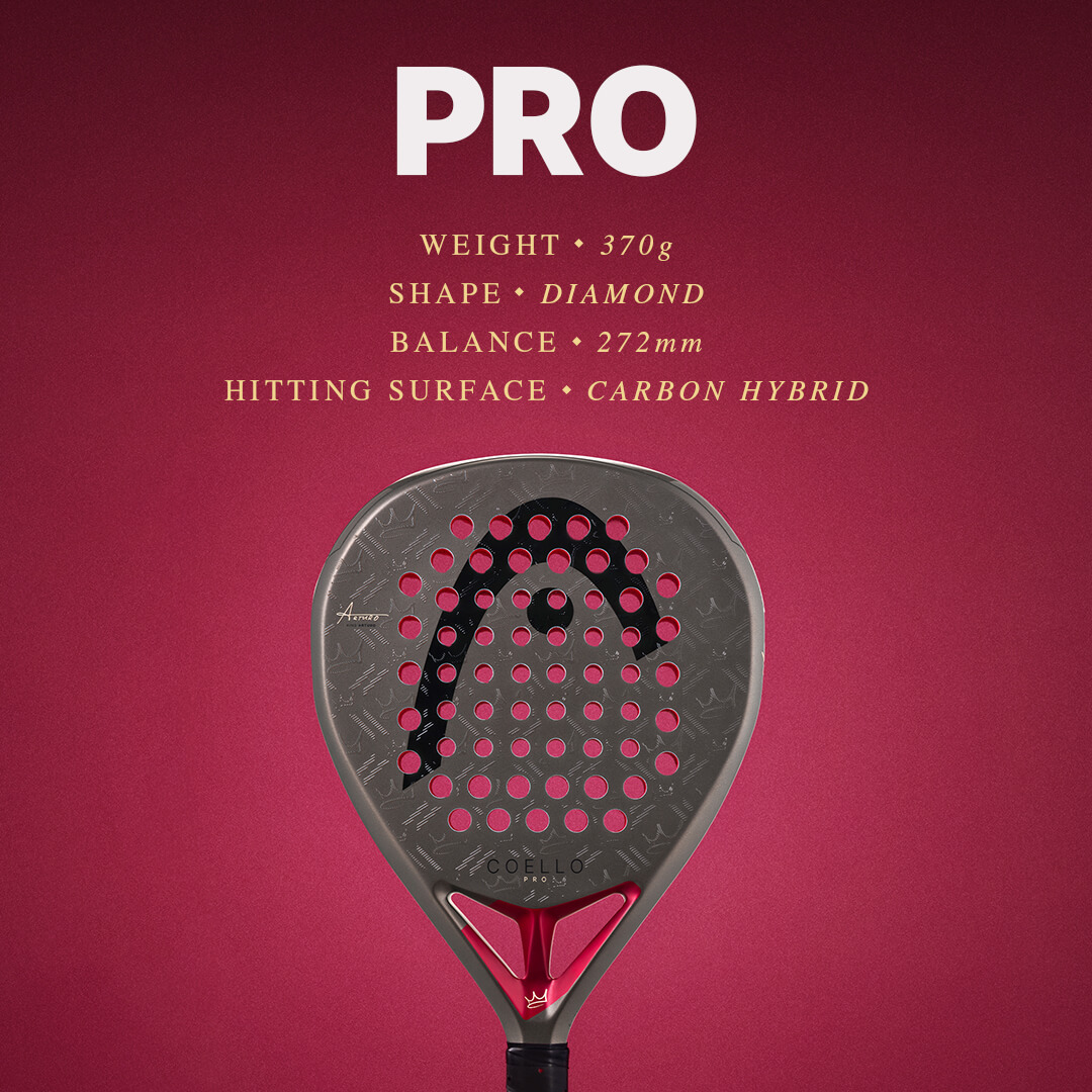 Poczuj energię Arturo na korcie. Rakiety COELLO, stworzone we współpracy z Arturo Coello, powstały z myślą o ofensywnej, dynamicznej grze. Diamentowa główka wzmacnia atak, a szorstka powierzchnia z motywem korony zwiększa rotację. Stabilna, reaktywna konstrukcja daje pewność przy uderzeniach znad głowy.
