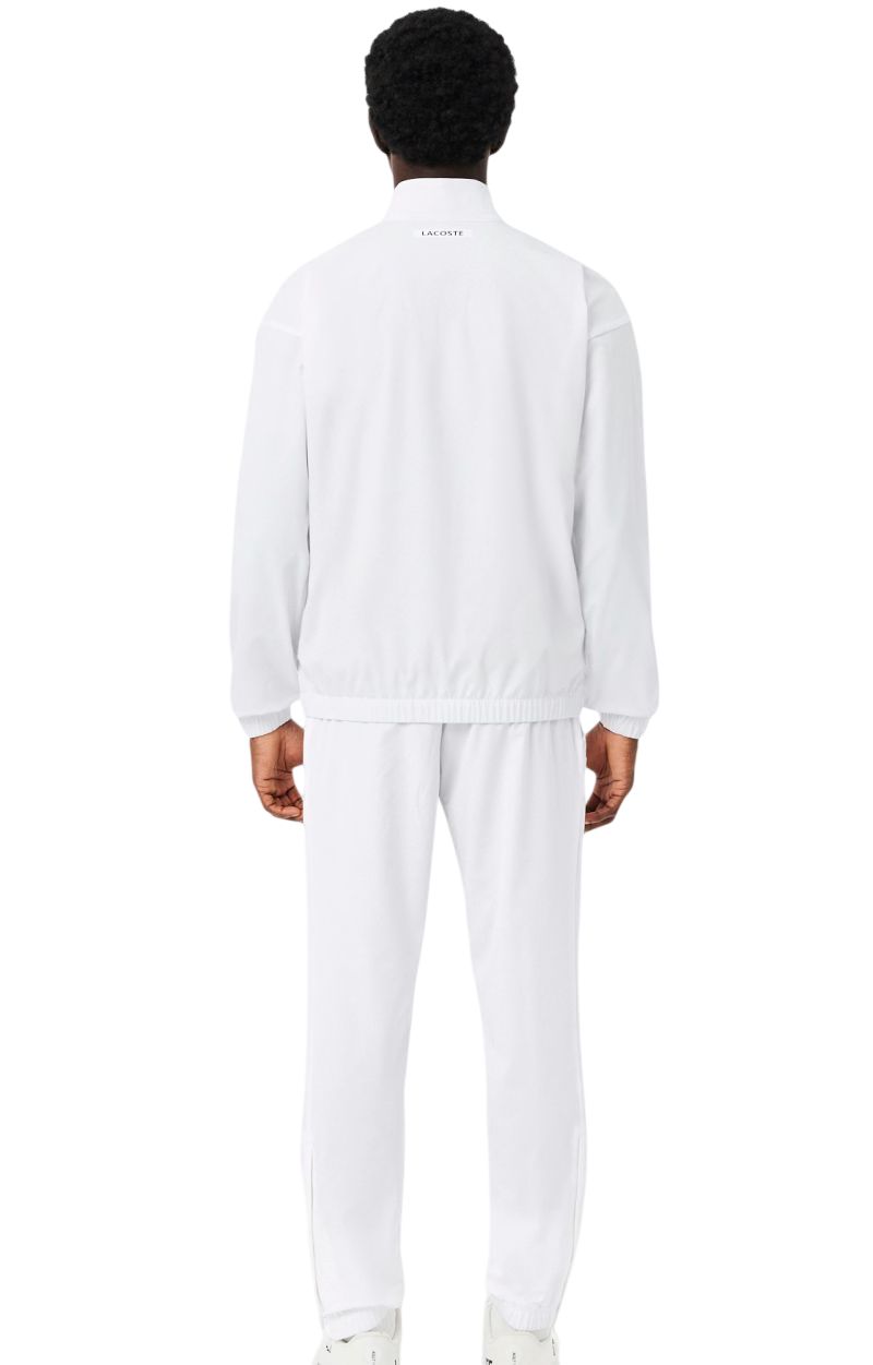 Komplet bluzy i spodni wykonany w prostym, regularnym kroju. Bluza zapinana na całej długości na zamek błyskawiczny. Delikatnie podwyższony kołnierz pozwoli na wygodę i ochronę. Dla lepszego dopasowania rękawy i dół bluzy zostały zakończone marszczonym, elastycznym materiałem. Dwie zapinane kieszenie boczne z wewnętrzną siateczką dla zapewnienia lepszej wentylacji. Spodnie posiadają elastyczną gumkę w pasie wraz z regulacją w postaci sznureczka. Dwie otwarte kieszenie boczne. Nogawki zakończone elastyczną gumką oraz krótkim bocznym zamkiem dla zwiększenia komfortu podczas aktywności.