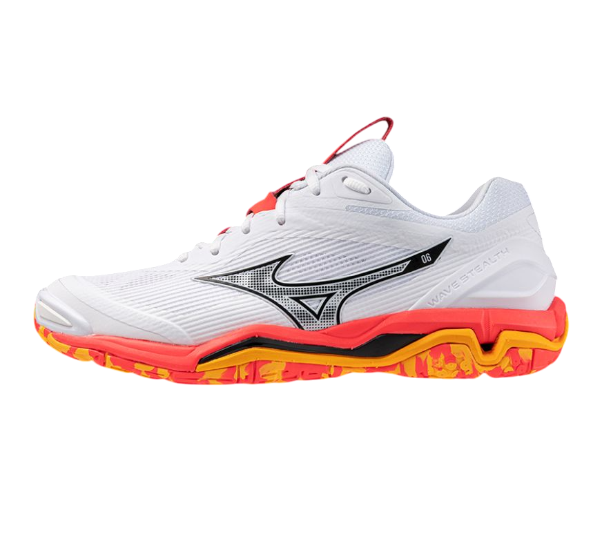 Męskie buty do squasha Mizuno Wave Stealth 6 - white/fiery coral2/citrus