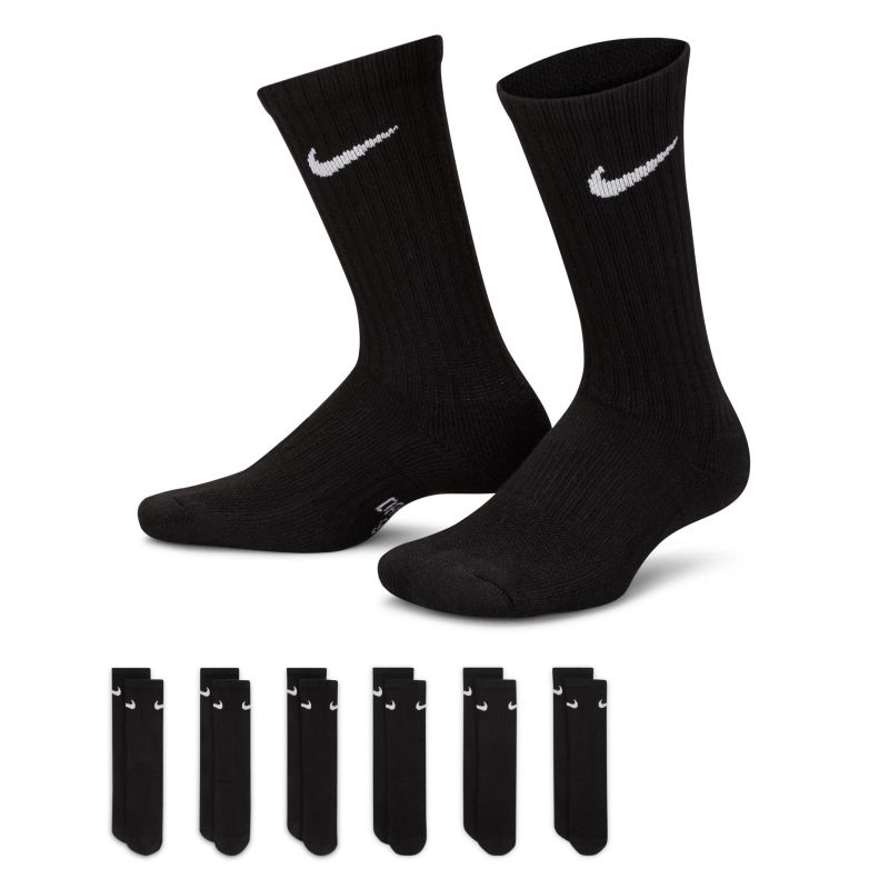 Bardzo dobry komfort gry w każdych warunkach. Gruba bawełniana warstwa w okolicach pięty oraz palców daje dodatkową wygodę oraz optymalną amortyzację. Włókna we wkładce zapobiegają zsuwaniu się skarpet. Góra wykończona elastycznymi ściągaczami dla lepszego dopasowania. Skarpety wykonane z oddychającego, szybkoschnącego materiału z zastosowaniem technologii DRI-FIT. Opakowanie zawiera 6 par skarpet.