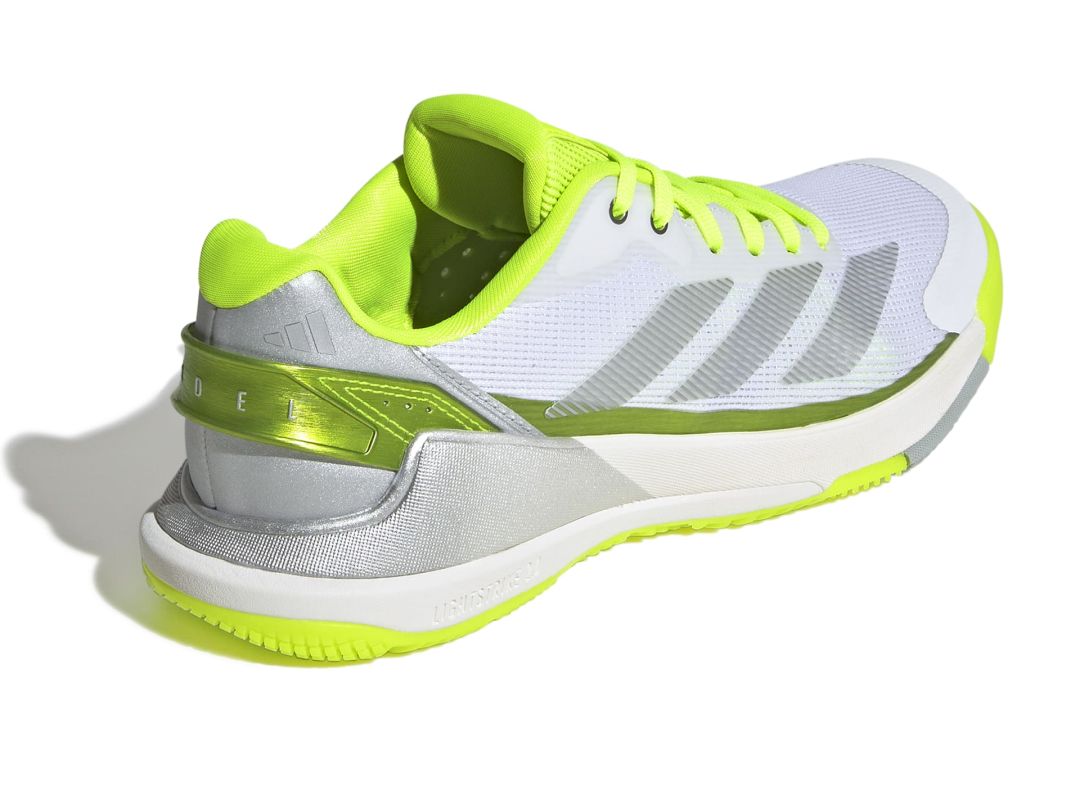 Model zaprojektowany z myślą o zapewnieniu maksymalnej szybkości oraz pewności poruszania na korcie padlowym. Lekka cholewka o dobrze dopasowującym się do stopy kroju została wykonana z oddychającej siateczki. Newralgiczne, najbardziej narażone na zniszczenia strefy wzmocniono materiałem ADITUFF, który znacząco zwiększa trwałość bez dodawania butowi wagi. Specjalna konstrukcja SLINGFRAME pozwala stabilniej utrzymywać stopę w bucie podczas gwałtownych ruchów. Podeszwa środkowa z materiału amortyzującego LIGHSTRIKE 2.0 łączy amortyzację i miękkość z nisko osadzonym profilem, definiując nową generację szybkości na korcie. Podeszwa zewnętrzna z twardej gumy w technologii ADIWEAR gwarantuje świetną wytrzymałość, a bieżnik opracowany specjalnie do nawierzchni padlowych niezawodną przyczepność.