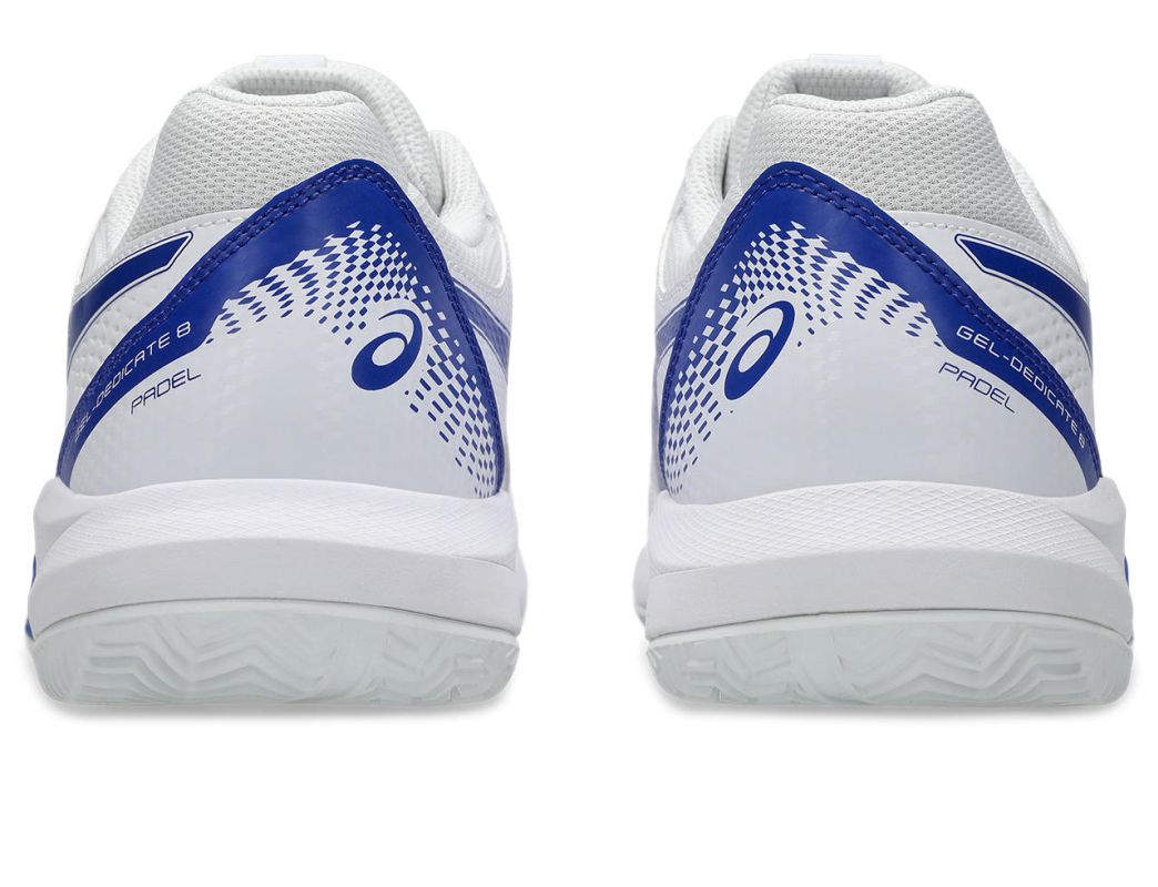 Uaktualniona wersja modelu Gel-Dedicate łączy dobrą amortyzację i stabilizację z wysoką trwałością. Jest to but o węższym, idealnie otulającym stopę kroju. Siateczkowa przednia część cholewki zwiększa oddychalność. Strefy narażone na przetarcie zostały obudowane i wzmocnione nakładkami ze skóry syntetycznej, co zapewnia dodatkowe wsparcie stopy i dobrą wytrzymałość. System Forefoot GEL Cushioning System w środkowej podeszwie to optymalna amortyzacja, a technologia Trussticsystem zwiększa komfort oraz stabilność boczną. Model posiada podeszwę przeznaczoną do gry na kortach padlowych (również z większą ilością piasku/kwarcu), wykonaną z odpornej gumy AHAR+.