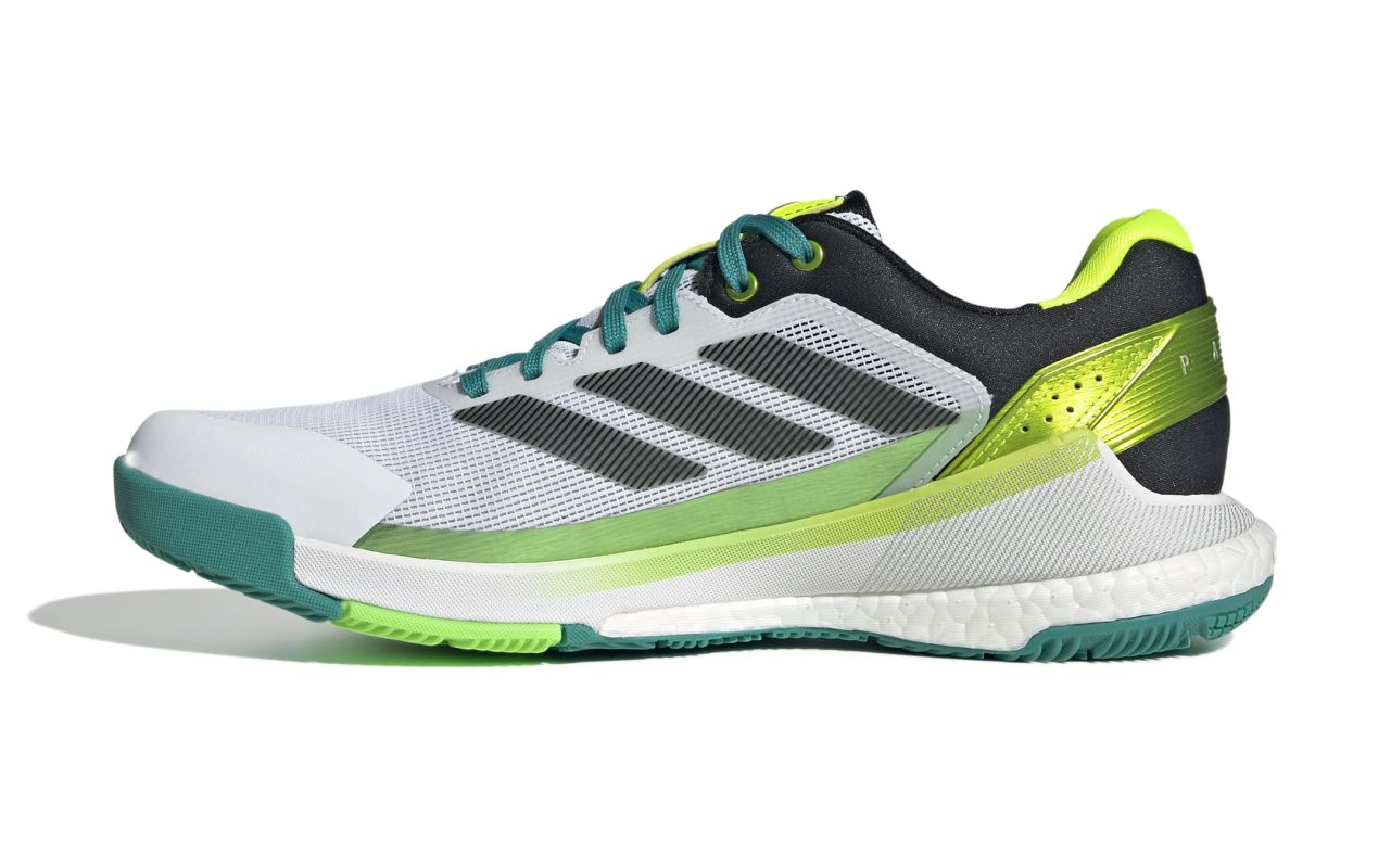 Model zaprojektowany z myślą o zapewnieniu maksymalnej szybkości oraz pewności poruszania na korcie padlowym. Lekka cholewka o idealnie dopasowanym do stopy kroju została wykonana z oddychającej siateczki. Newralgiczne, najbardziej narażone na zniszczenia strefy wzmocniono materiałem ADITUFF, który znacząco zwiększa trwałość bez dodawania butowi wagi. Język o częściowo zintegrowanej konstrukcji oraz usztywniany, profilowany zapiętek dodatkowo wspierają stopę, stabilnie utrzymując ją w bucie podczas gwałtownych ruchów. Podeszwa środkowa z uznanego materiału piankowego BOOST łączy miękkość i wygodę z efektywną amortyzacją, pozwalając wytworzyć jeszcze więcej energii podczas każdego odbicia od podłoża. Podeszwa zewnętrzna z twardej gumy w technologii ADIWEAR gwarantuje świetną wytrzymałość, a bieżnik opracowany specjalnie do nawierzchni padlowych niezawodną przyczepność.