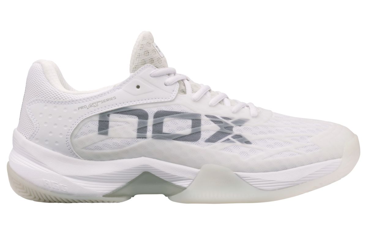 Buty NOX zostały specjalnie zaprojektowane, aby zminimalizować ryzyko kontuzji i zoptymalizować wydajność gracza na korcie padlowym. Przetestowane w laboratorium, posiadają certyfikaty kliniczne Centrum Technologii Obuwia INESCOP w Alicante w Hiszpanii. Dzięki zastosowaniu technologii LATERAL SUPPORT model AT10 Lux jest bardzo stabilny, szczególnie podczas ruchów bocznych. Cholewka została wykonana z oddychającej siateczki i posiada elastyczne, gumowe wzmocnienia ABRAXONE w najbardziej narażonych na przetarcia okolicach palców oraz po wewnętrznej stronie stopy. Wewnętrzna wkładka ORTHOLITE o właściwościach antybakteryjnych i zmniejszających uczucie zmęczenia zapewnia świetny komfort podczas gry, a technologia AGG umieszczona pod piętą redukuje przeciążenia i wspomaga amortyzacją. Bieżnik Optimal GRIP gwarantuje doskonałą przyczepność na nawierzchniach padlowych.