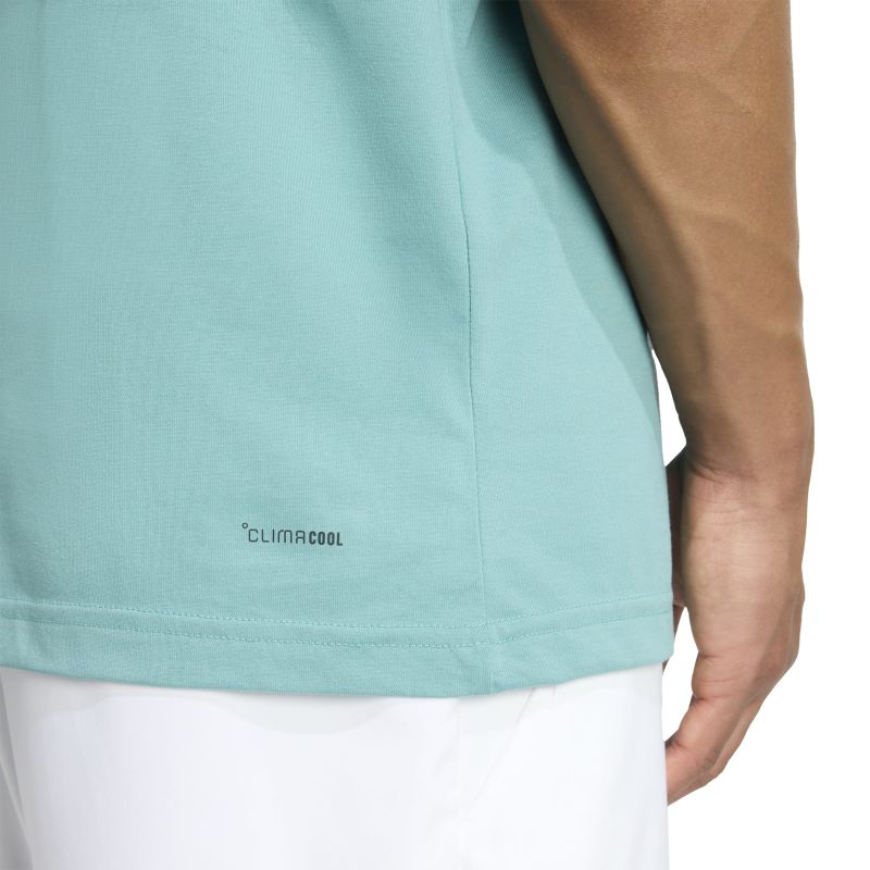 Klasyczny, prosty T-shirt wykonany w regularnym kroju, z lekkiego i komfortowego materiału. Delikatnie rozciągliwa tkanina dobrze dopasowuje się do ciała, zapewniając swobodę podczas aktywności. Idealny wybór do treningów, gier i codziennego użytku. T-shirt wykonany z oddychającej, sprawnie odprowadzającej wilgoć tkaniny. Duży, ciekawy motyw graficzny umieszczony na plecach. Zastosowano technologię CLIMACOOL.