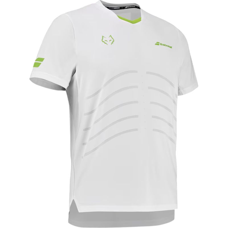 Komfortowy T-shirt o regularnym, zapewniającym swobodę ruchów kroju. Strefy panelu meshowego oraz elastyczny poliestrowy materiał z domieszką elastanu zapewnią dobrą oddychalność i dopasowanie do sylwetki. Wydłużony tył dla lepszej ochrony. Rozcięcia po bokach dla lepszego zakresu ruchomości. T-shirt posiada dekolt w kształcie litery V. Koszulka wykonana z oddychającego materiału. Koszulka pochodzi z kolekcji czołowego hiszpańskiego padlisty,Juana Lebrona.