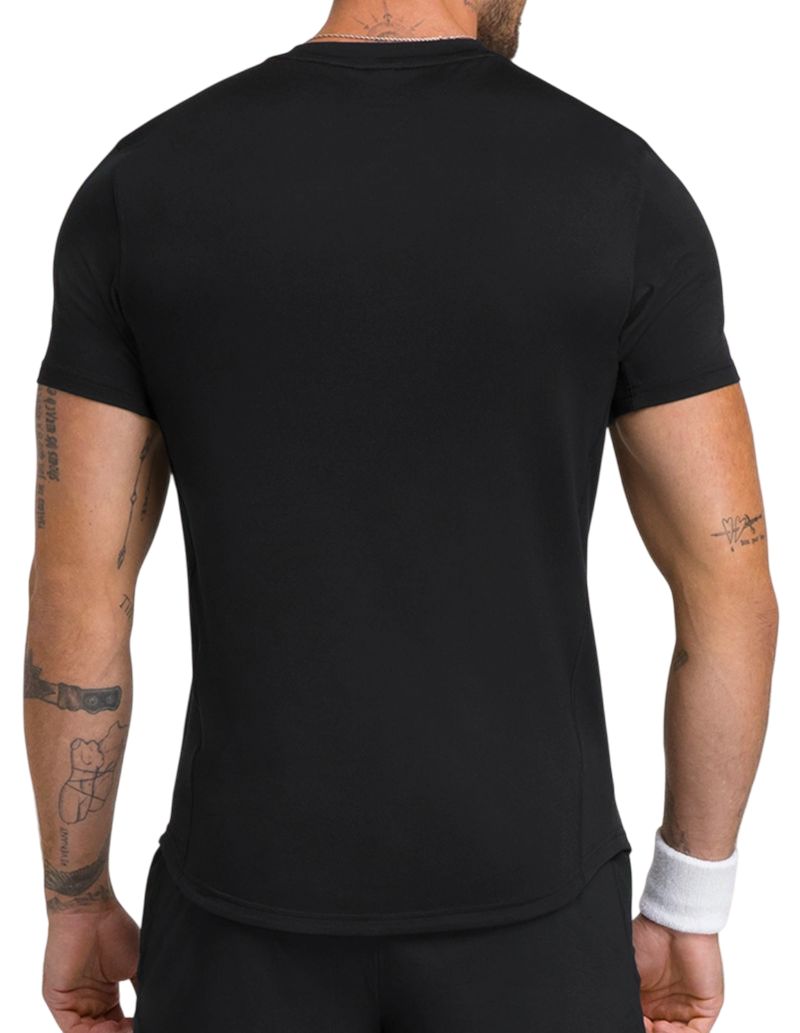 Komfortowy T-shirt o prostym, dopasowanym do sylwetki kroju. Wykonany z miękkiej i przyjemnej w dotyku, lekkiej technicznej tkaniny. Materiał jest delikatnie rozciągliwy, oddychający, szybko schnie i sprawnie odprowadza wilgoć. Wydłużony, zaokrąglony tył zapewnia dodatkową ochronę. Płaskie szwy minimalizują ryzyko otarć i podrażnień. Idealny wybór zarówno na trening, jak i do noszenia na co dzień.