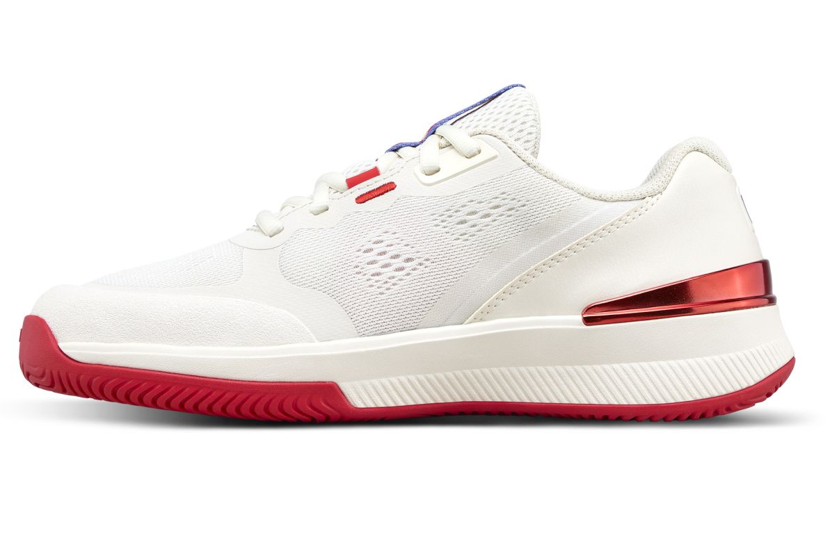 Pierwsze tenisowe buty zaprojektowane z myślą o biomechanice budowy kobiecej stopy i damskim stylu gry. Stworzone we współpracy z zawodniczką WTA Martą Kostyuk, łączą lekkość, stabilność i responsywność potrzebne, by sprostać wymaganiom każdej tenisistki, niezależnie od poziomu zaawansowania. Specjalna konstrukcja cholewki zapewnia optymalną stabilność, wsparcie łuku stopy oraz ochronę pięty. Podwójna warstwa lekkiej i oddychającej siateczki gwarantuje odpowiednią przewiewność i komfort, a wzmocnienia w newralgicznych strefach trwałość i dodatkowe wsparcie. Formowana pianka w podeszwie środkowej i wkładka Ortholite przekładają się na miękkość i sprężystość pod stopami. But posiada podeszwę zewnętrzną wykonaną z trwałej gumy Duralast, a jej uniwersalny bieżnik z systemem non-marking zapewni przyczepność na różnych nawierzchniach.