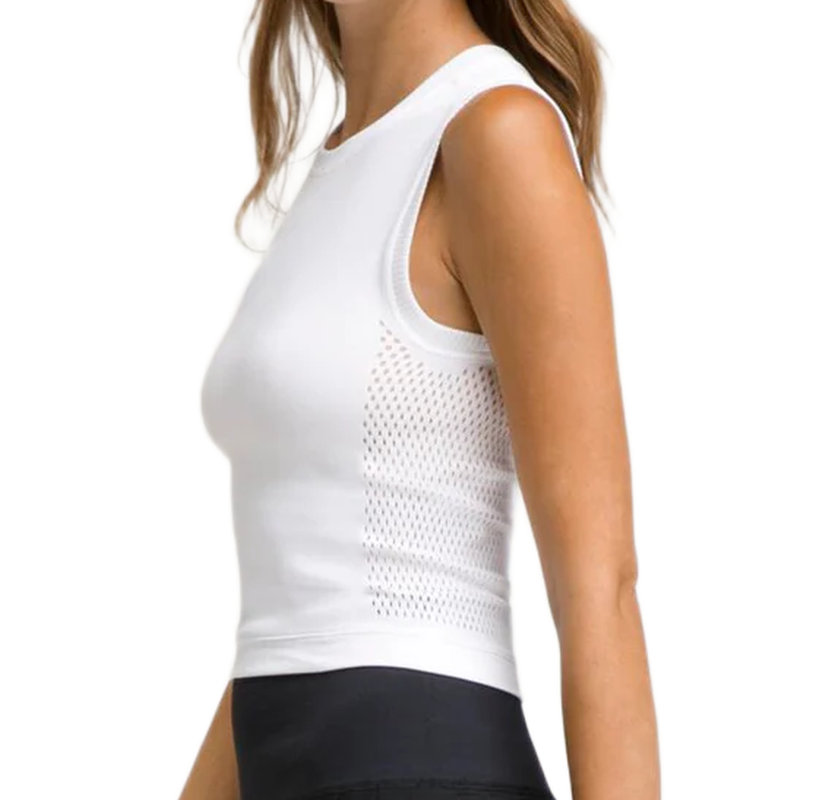 Delikatnie elastyczny top na szerokich ramiączkach zapewni idealne dopasowanie do sylwetki oraz swobodę ruchów podczas aktywności. Cały tył oraz boki zostały wykonane z perforowanego materiału zapewniającego lepszą wentylację. Miękki, przyjemny w dotyku materiał zapewni wysoki komfort noszenia. Krótki krój sprawdzi się idealnie do spodni czy spódniczki z wysokim stanem. Płaskie szwy zminimalizują ryzyko otarć i podrażnień. Subtelne logo producenta z tyłu topu.