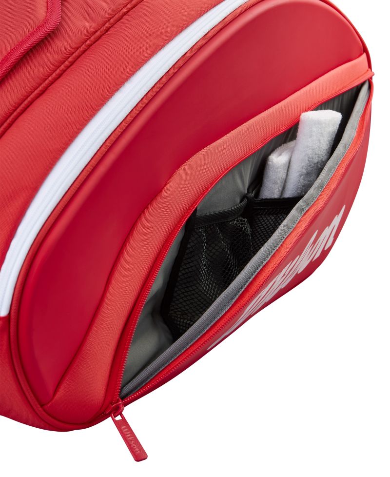 Niezwykle praktyczna torba mogąca łącznie pomieścić do 6 rakiet padlowych. Posiada trzy główne komory, z których jedna wyposażona jest w ochronę termoizolacyjną. Środkowa komora z dwoma wewnętrznymi organizerami zapewnia wyjątkową pojemność i łatwość zachowania porządku. Dwie zewnętrzne, boczne kieszenie na akcesoria zamykane na suwaki - w tym jedna z ochroną termoizolacyjną. Dodatkowa kieszeń na akcesoria umieszczona na plecach. Osobna, wentylowana komora na obuwie lub mokrą odzież. Dwie regulowane i komfortowe szelki oraz uchwyt do stawiania w pionie pozwolą na wygodne przenoszenie torby.